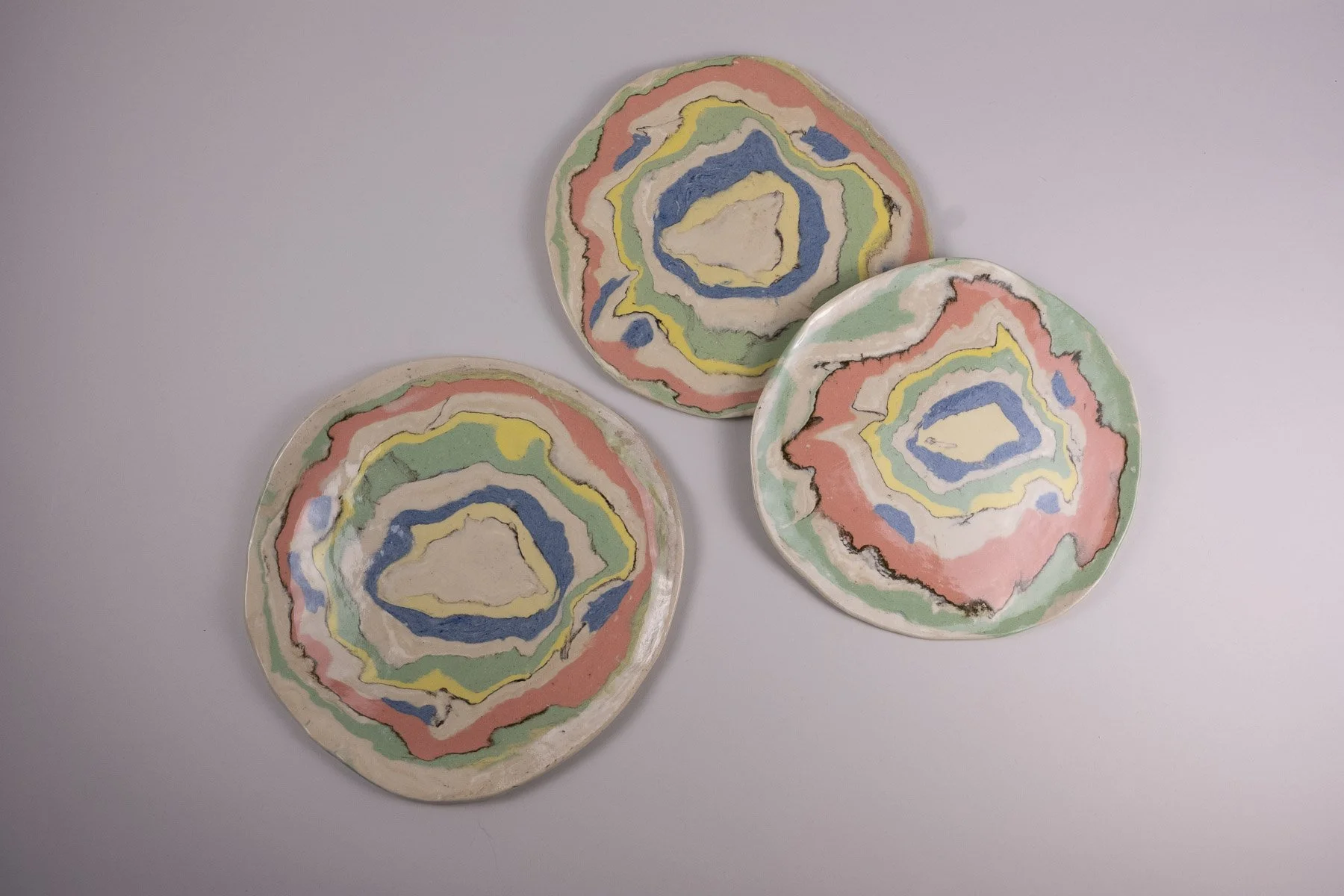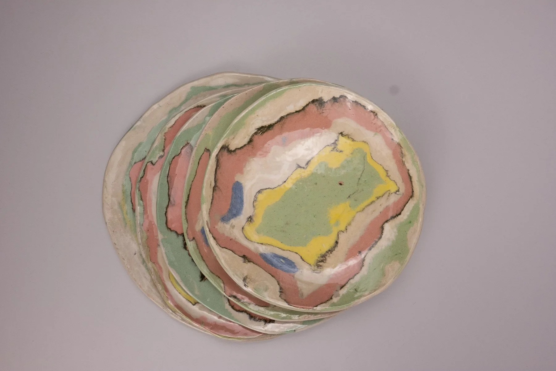 Set of 5 Nerikomi slab-built dishes.